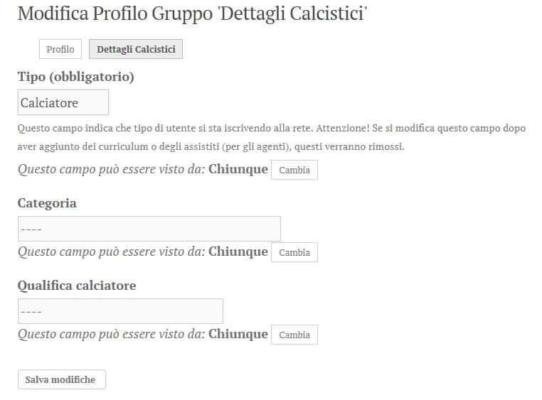 Cliccate su Profilo → Modifica → DettagliCalcistici e scegliete il vostro Profilo Calcistico.