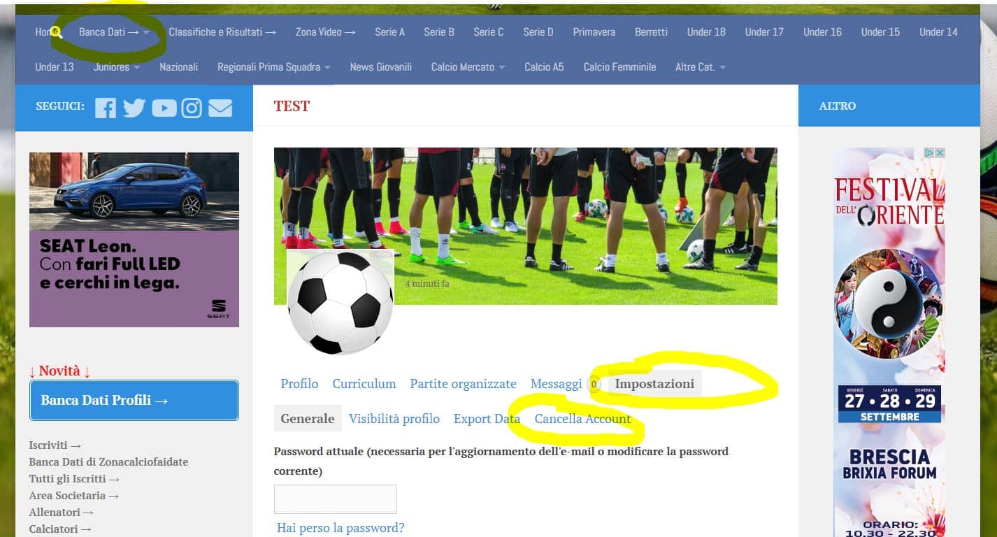 - Andare nel vostro Profilo (Menu –> BancaDati –> Il mio Profilo)