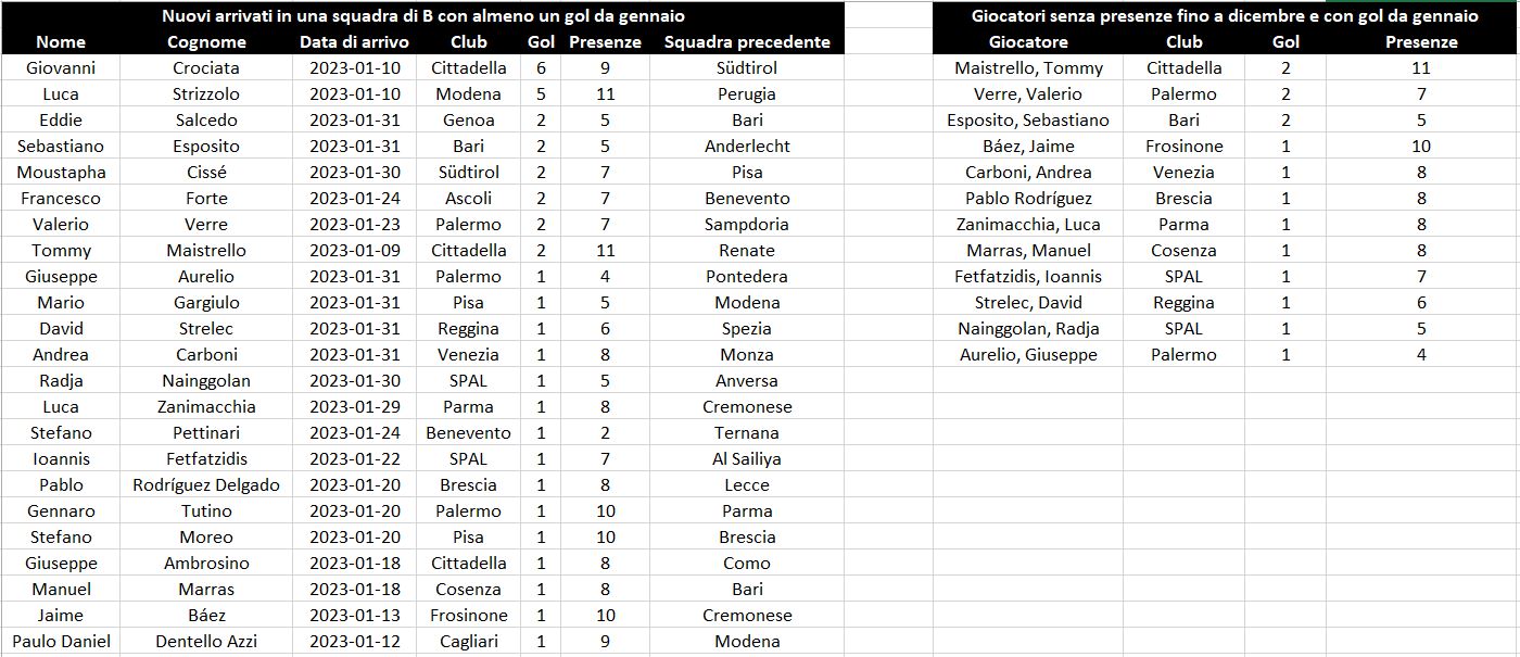 Serie B. 38 gol, tanto ha fruttato il mercato di gennaio 23 giocatori hanno segnato almeno una rete dopo il cambio di maglia: guida Crociata con sei centri